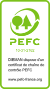 Les bois utilisés bénéficient de la certification PEFC™ (Plan European Forest Certification). La marque PEFC atteste que les matières premières proviennent bien de forêts dont les propriétaires se sont engagés à respecter les règles de gestion forestière durable.
